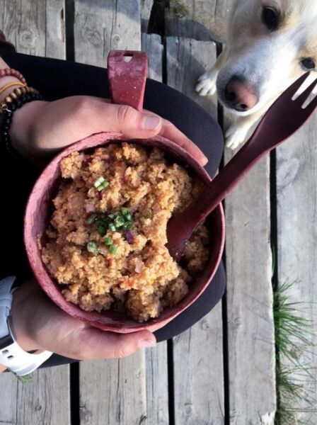 KUPILKA 55, tek elle iyi bir tutuş için bir tutamağa sahiptir. Çorba kasesi olarak veya dar ekipmanla yapılan gezilerde tüm yiyecekleri yemek için çalışır.
