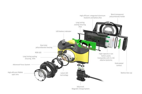 Farklı koşullar için çoklu yetenek. Ürünle birlikte verilen şarj edilebilir pil veya AA alkalin pillerle güç verin. İkili güç modları (Sabit ışık ve Enerji Tasarrufu), çıkarılabilir, değişken lamba kafası ve farklı montaj seçenekleri